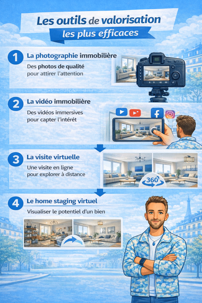 La valorisation ne consiste pas uniquement Ă prendre de belles photos. Câest un ensemble dâactions coordonnĂ©es pour rendre le bien plus lisible, plus attractif et plus dĂ©sirable aux yeux du bon acquĂ©reur.